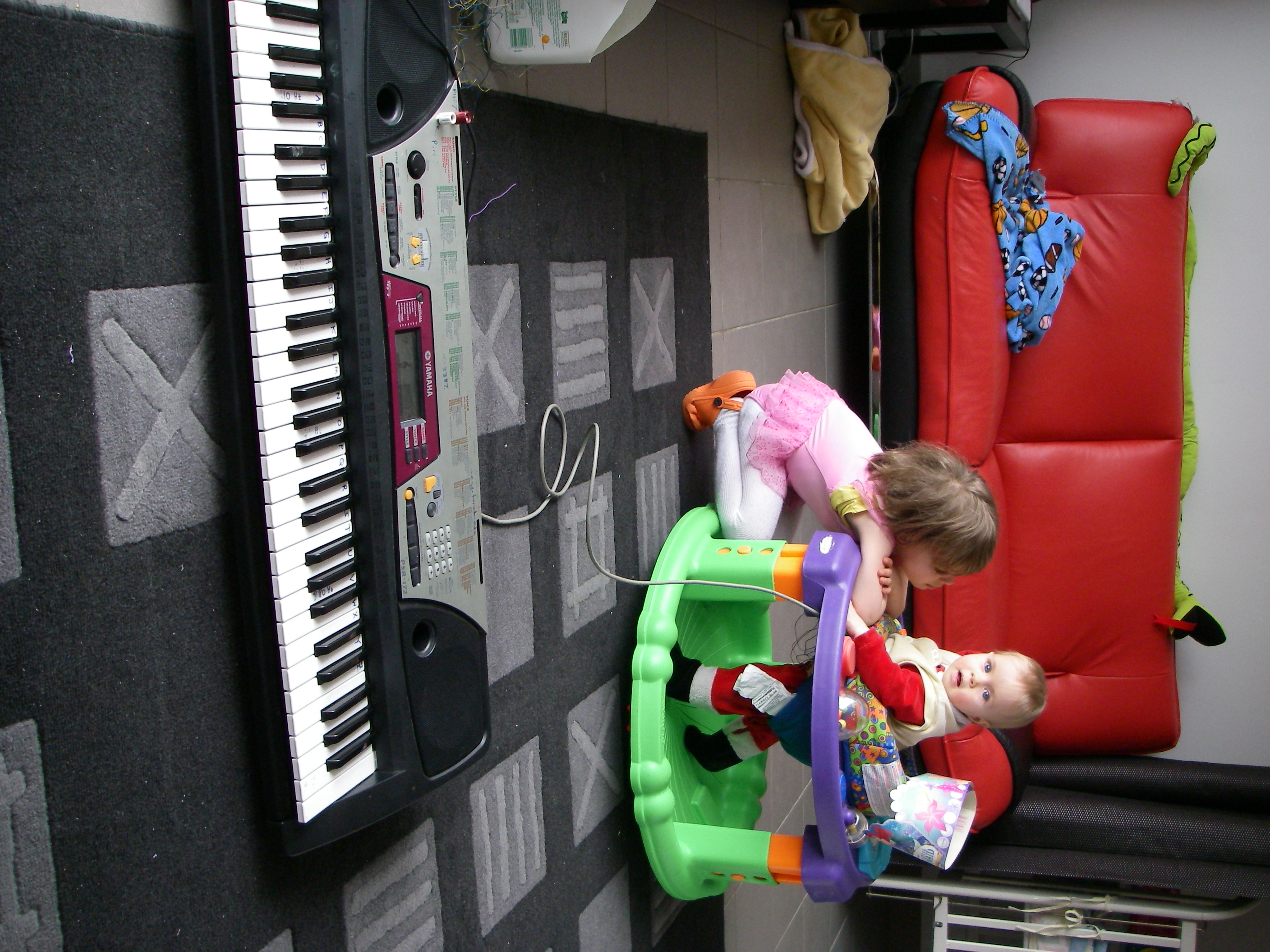 movie of christina playing ascending natural scale with stephanessie in exersaucer