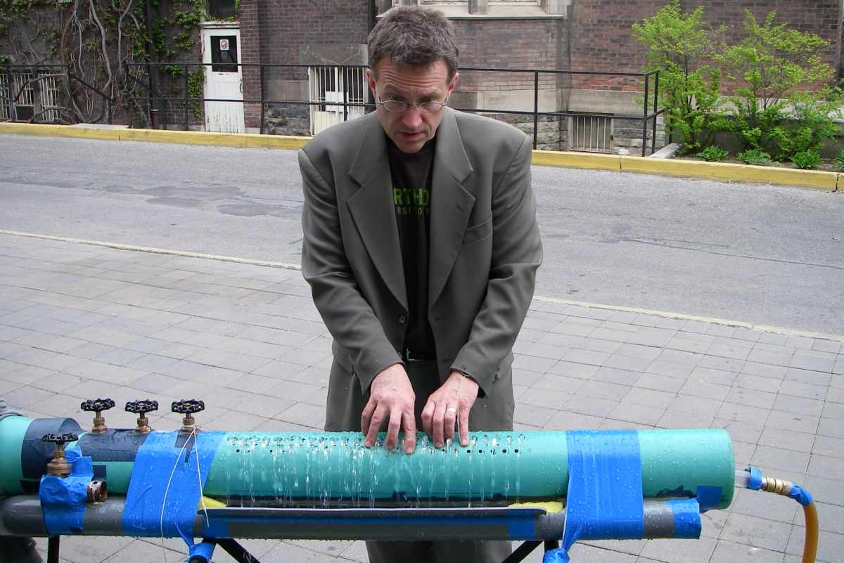 Thursday afternoon, 2006 May 4th, showing the Hydraulophone to Gage Averill and others at the Faculty of Music