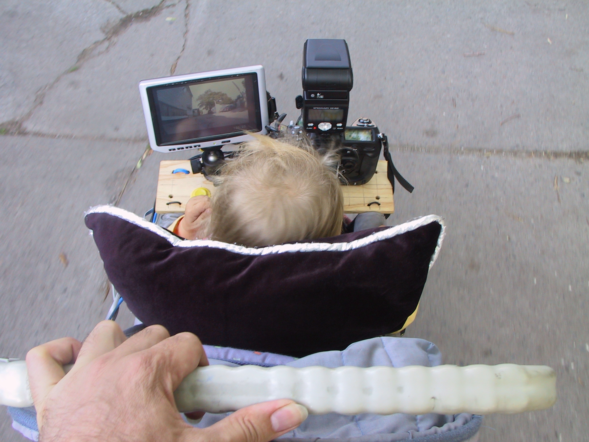 in front of the stroller: