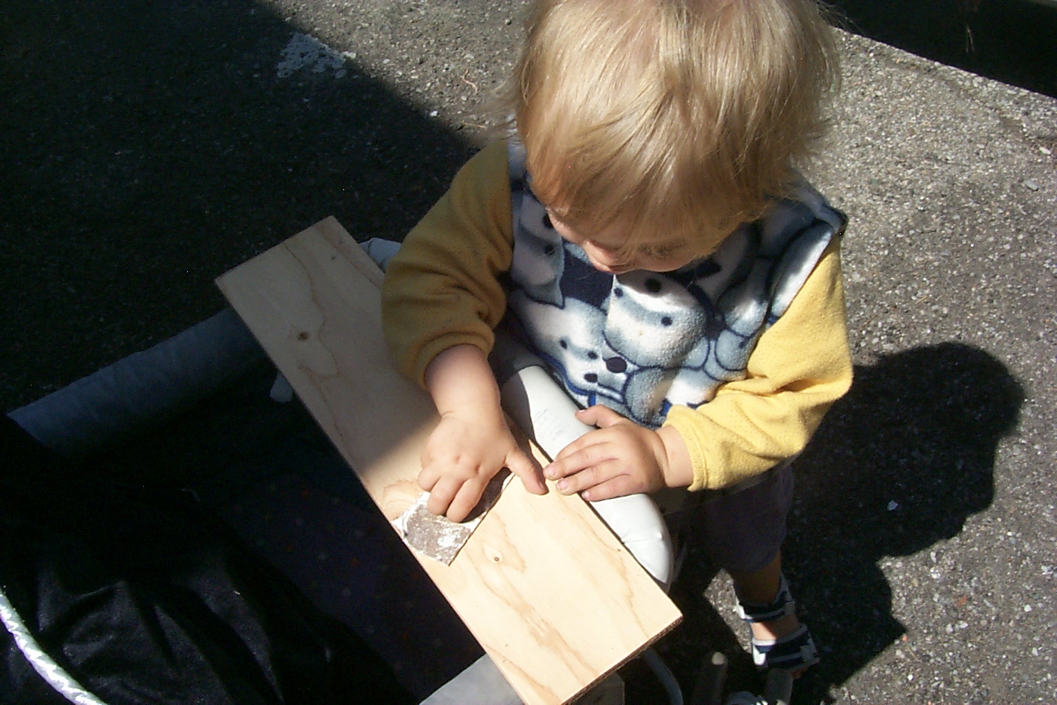 the sharp corners; Christina is eager to do some of the sanding