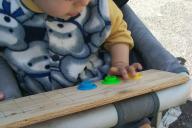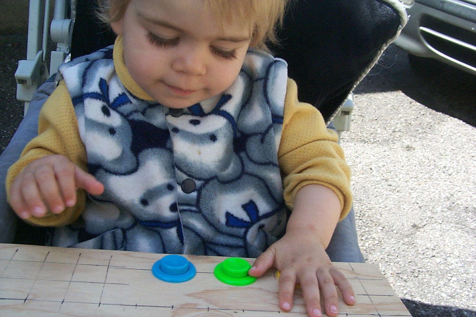 while seated in the stroller, as shown below: