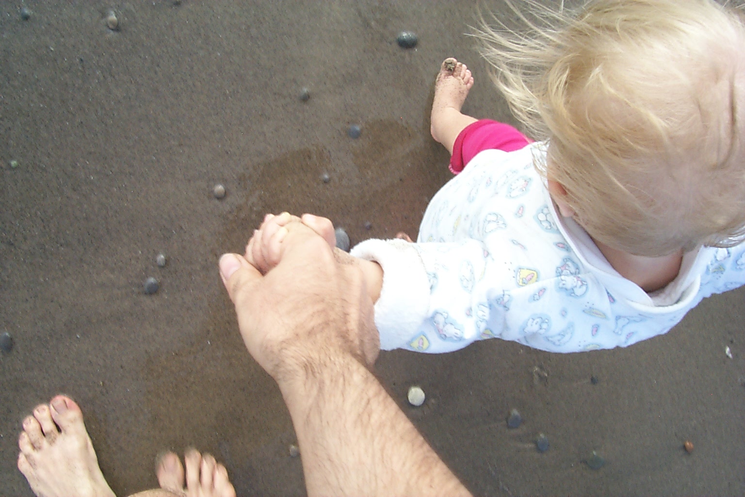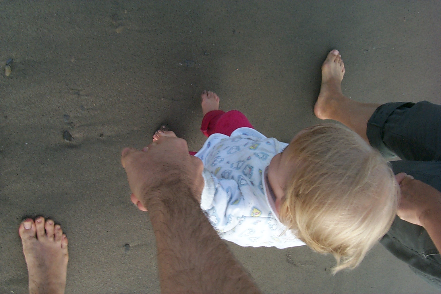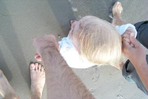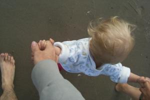 i'm just learning how to walk on my own now, with mommy and daddy sitting apart from each other, i walk from one to the other...