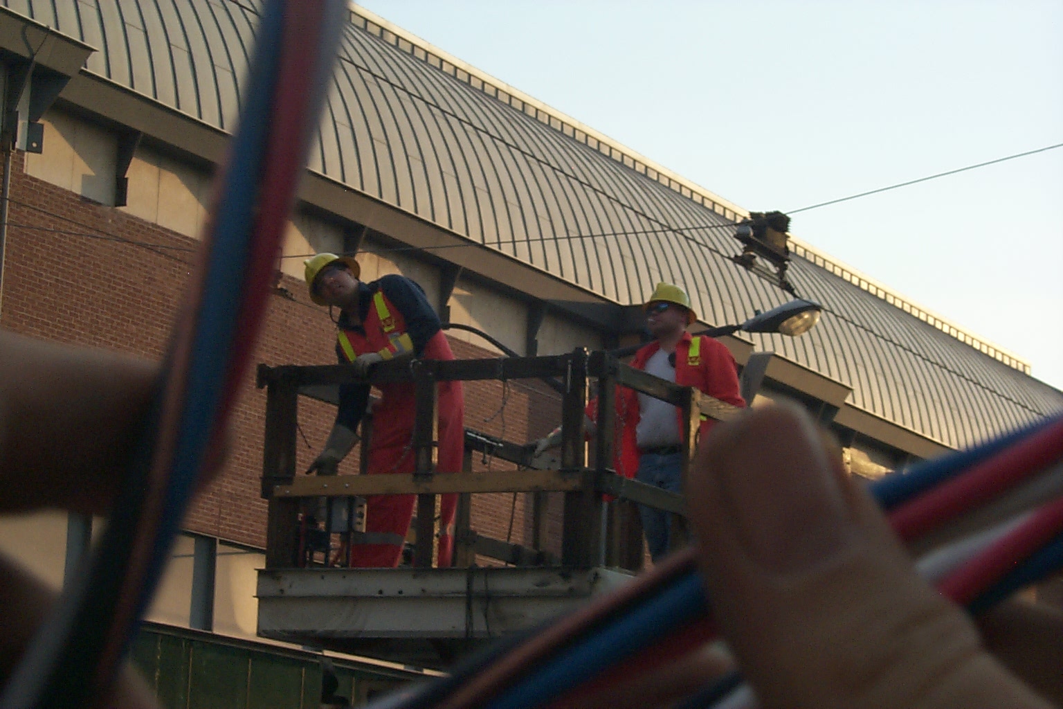 (then there were some electricians fixing the live 600 volts DC line for the dundas streetcar that runs in front of our house.)