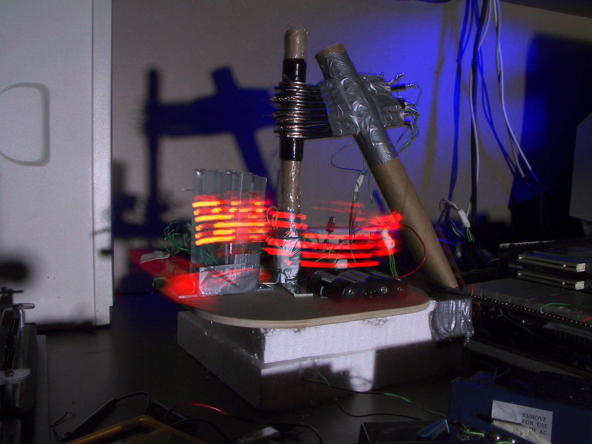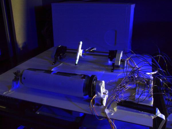 plotter, made from two pepsi cans, and parts from salvaged videocassette recorder: