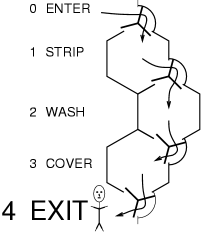 The walls of the hexagonal triage/observation room are made